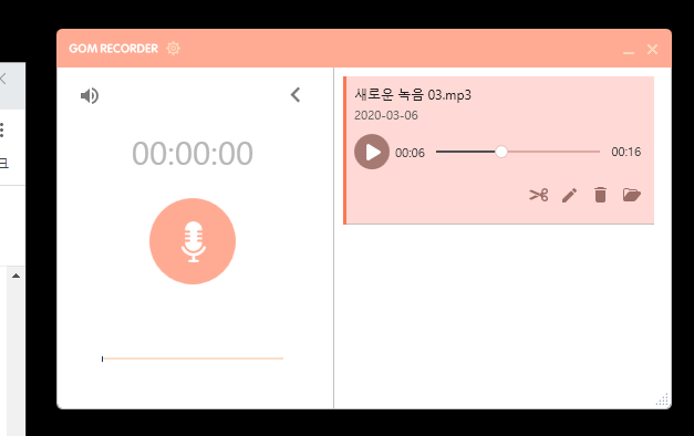 데스크탑에 위와 같은 창이 하나 뜨는데 사이트에서 [소리듣기]를 켜놓고 이 창의 녹음하기 마이크 버튼을 누르면 mp3 파일을 만들 수 있고 이것을 동영상에 넣어 사용할 수도 있다.