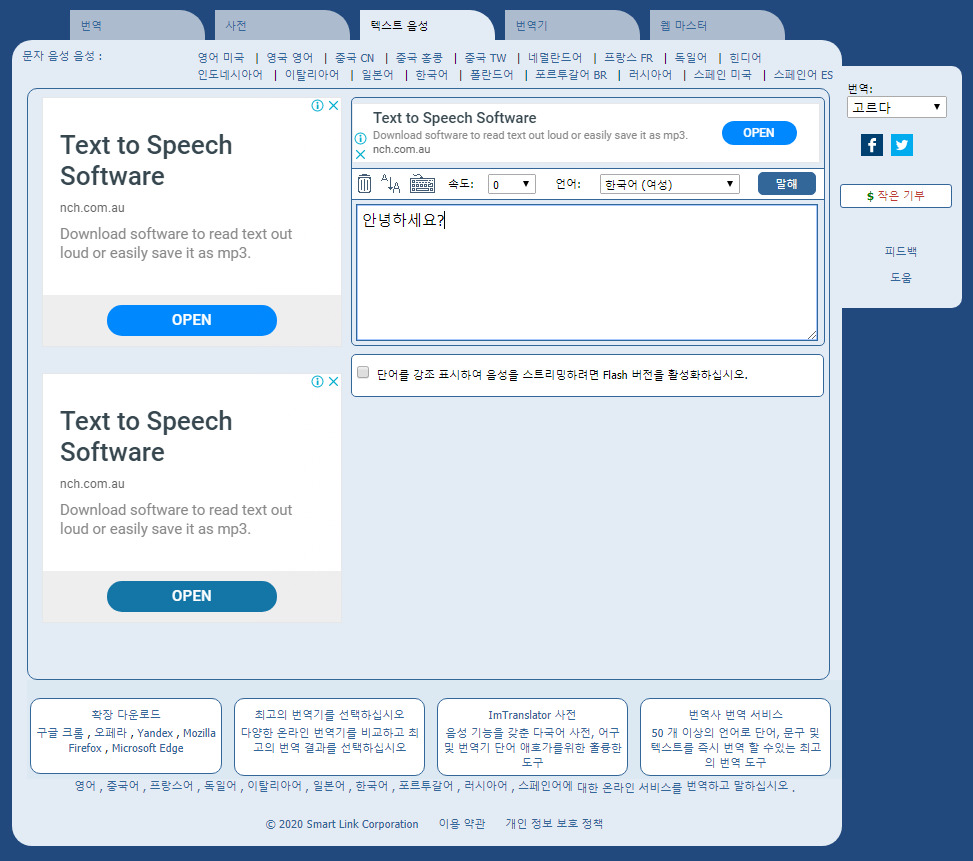 텍스트 음성변환 프로그램을 찾는 사람들은 유료보다는 무료서비스를 찾는다. 여기에 비록 기계음이지만 자연스런 한국인 발음을 원하게 되는데, 위 두가지를 만족시킬만한 사이트를 찾는 것은 쉽지 않았다.