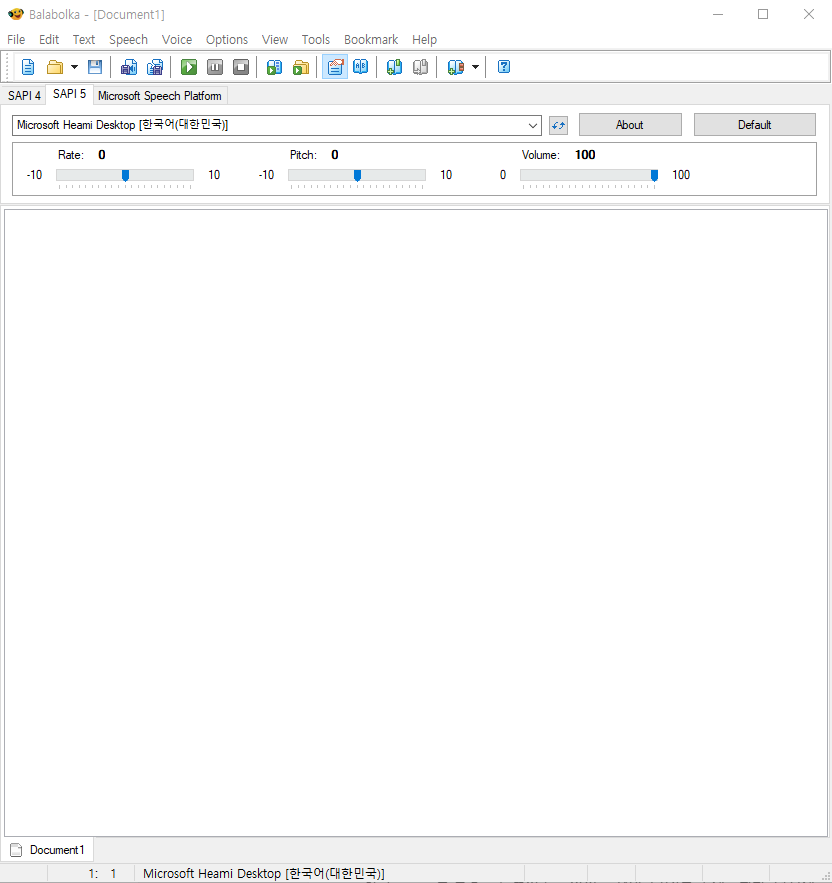 Balabolka라는 프로그램이다. 다른 곳은 다운이 아니라 사이트를 열면 바로 음성변환기능을 이용할 수 있는 것에 반에 이것은 프로그램을 다운받아야하는데 내가 맨 처음 이 프로그램을 이용해본 것은 mp3가 제공되지 않는 책의 음성이 필요했기 때문이다.